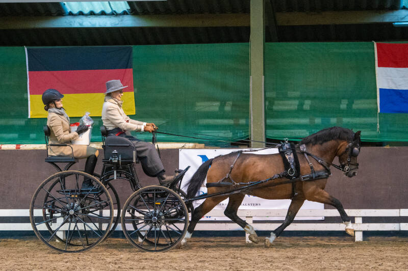 - De pony wordt voorgesteld met een marathon- of vrijetijdswagen.